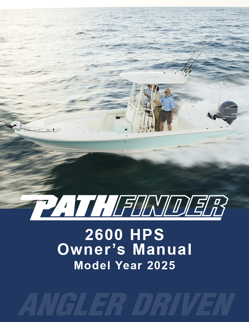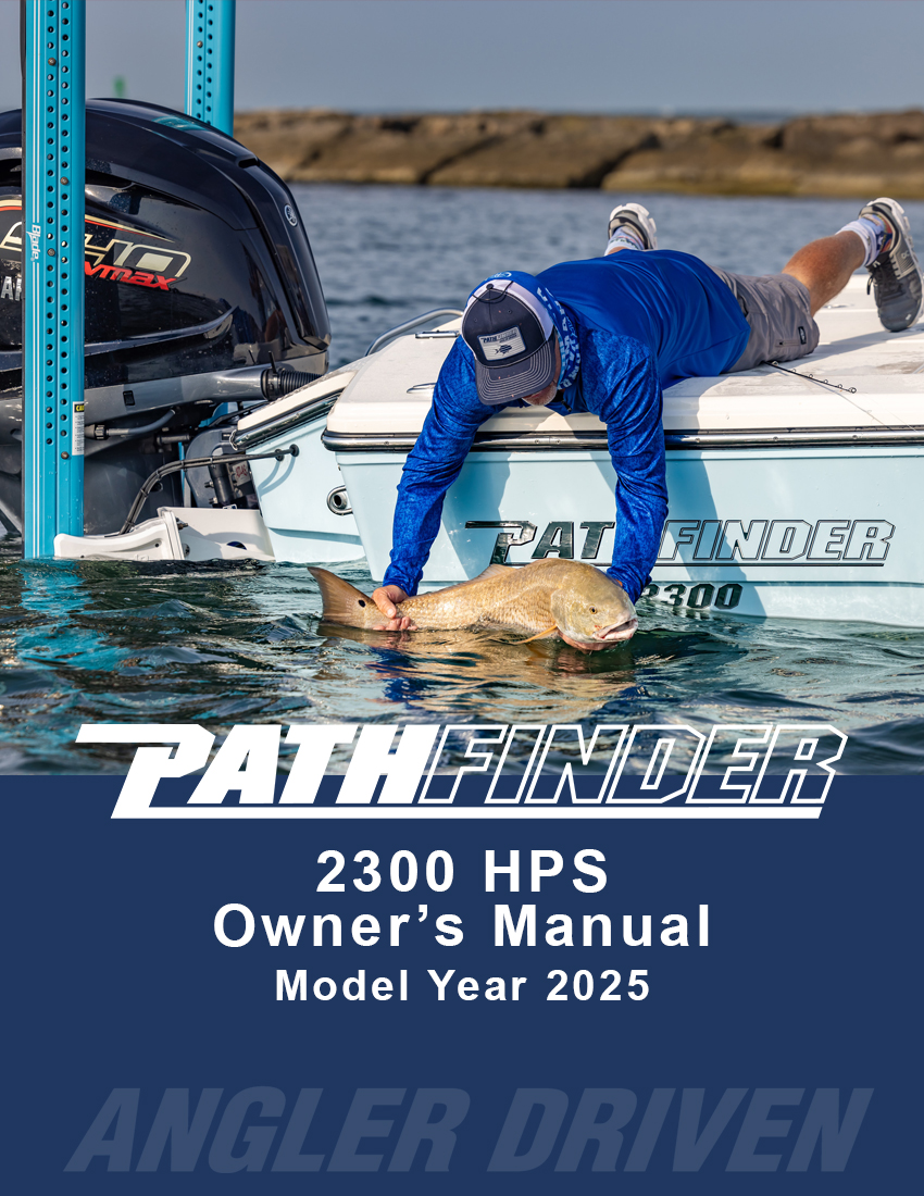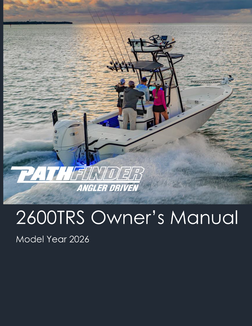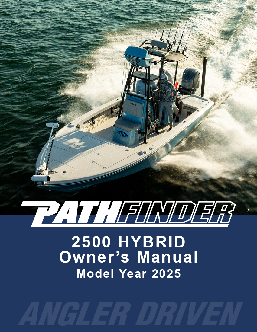 Your Pathfinder comes pre-wired for a trolling motor standard and also comes with backing plates that are laminated into the bow for trolling motor mounting. A 60” shaft trolling motor should work for most all applications for all Pathfinder models excepting for the 2700 Open, where an 84” shaft is recommended because of its taller bow. The 2005 TRS, 2200 TRS and 2200 TE are pre-wired with a 24-volt system (2 trolling motor batteries) and perform well with an 80lbs thrust trolling motor in the large majority of conditions. The 2300 HPS, 2400 TRS, 2500 Hybrid, 2600 HPS, 2600 TRS and 2700 Hybrid are pre-wired with a 36- volt system (3 trolling motor batteries) to accept trolling motors with over 100 lbs of thrust. It is advised to have your local Pathfinder dealer install your chosen trolling motor. However, if you plan on installing the trolling motor yourself you can find diagrams showing the trolling motor wiring and the location and size of the backing plates in your model’s owner’s manual along with basic mounting instructions.