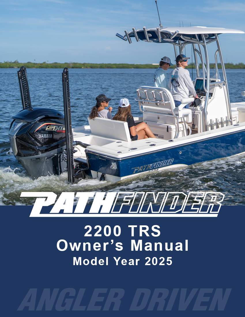 Your Pathfinder comes pre-wired for a trolling motor standard and also comes with backing plates that are laminated into the bow for trolling motor mounting. A 60” shaft trolling motor should work for most all applications for all Pathfinder models excepting for the 2700 Open, where an 84” shaft is recommended because of its taller bow. The 2005 TRS, 2200 TRS and 2200 TE are pre-wired with a 24-volt system (2 trolling motor batteries) and perform well with an 80lbs thrust trolling motor in the large majority of conditions. The 2300 HPS, 2400 TRS, 2500 Hybrid, 2600 HPS, 2600 TRS and 2700 Hybrid are pre-wired with a 36- volt system (3 trolling motor batteries) to accept trolling motors with over 100 lbs of thrust. It is advised to have your local Pathfinder dealer install your chosen trolling motor. However, if you plan on installing the trolling motor yourself you can find diagrams showing the trolling motor wiring and the location and size of the backing plates in your model’s owner’s manual along with basic mounting instructions.